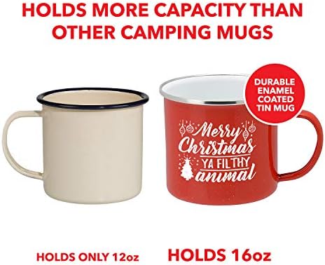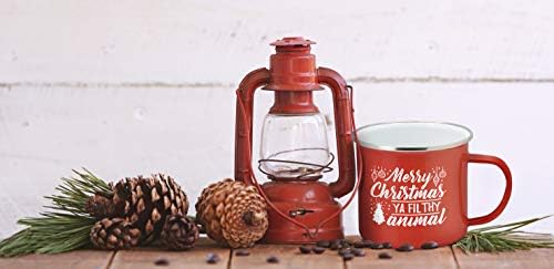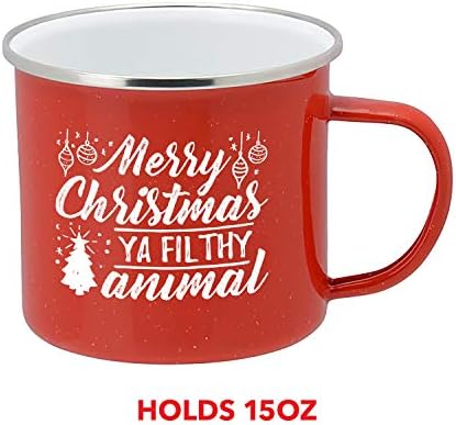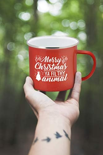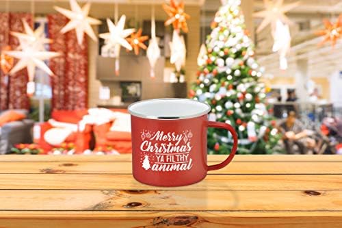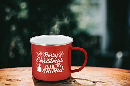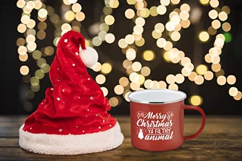Holiday Coffee Mug - Festive Red Enamel Camping 16 Ounce Coffee Cup For Home and Gifting, Merry Xmas Ya Filthy Animal