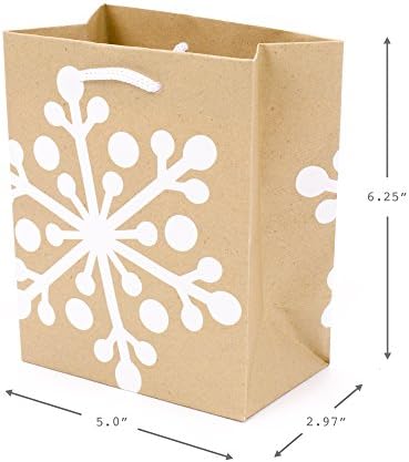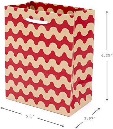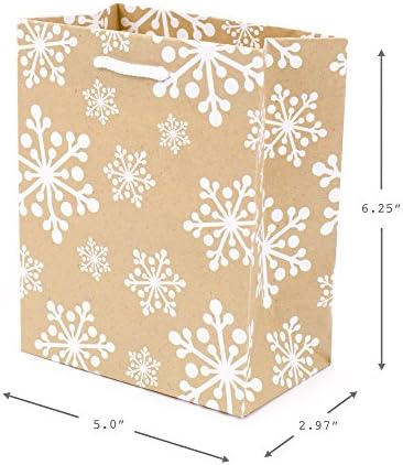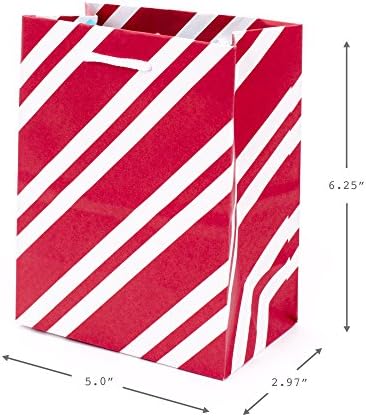 Hallmark 6" Small Holiday Gift Bag Set (Pack of 5; Red, White and Kraft) Snowflakes, Stripes, Merry