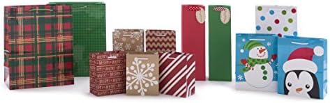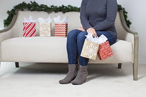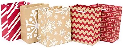These adorable gift bags feature bold holiday designs including snowflakes, stripes, and "Merry" lettering on backgrounds of kraft paper, red, and white. Convenient 5-pack helps you complete your Christmas gift wrapping quickly and easily.