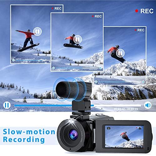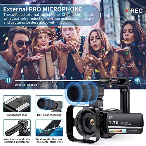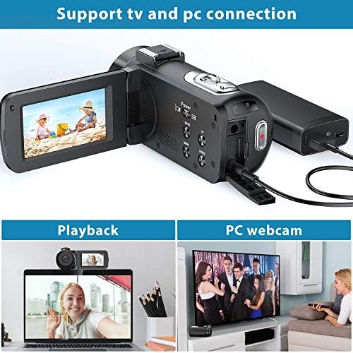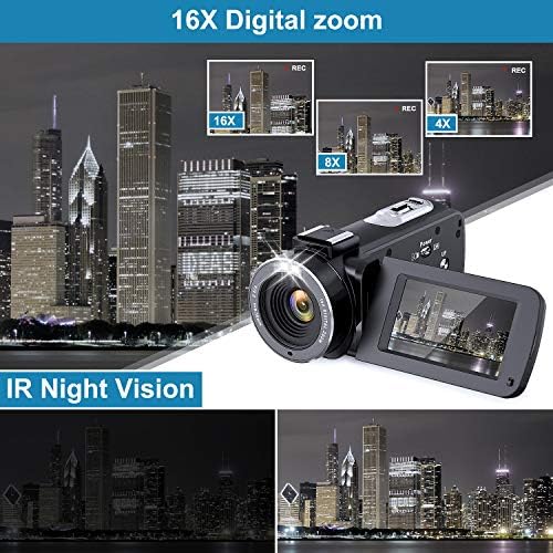 IR Night Vision & External microphone: Under IR Night Vision, the camera can shoot high definition image videos, work perfectly in the darkness, also shoot great in low light. It Adopts X-Y stereo pickup technology, clear and stable sound image localization. It is the ideal video camera with microphone for bloggers and videography lover