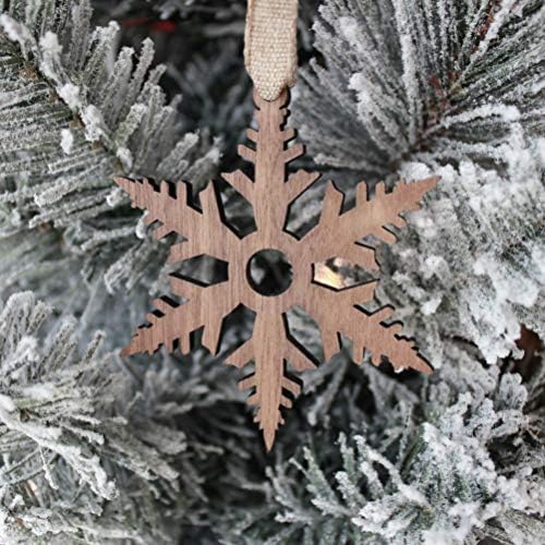 Wooden Christmas Tree Ornament 2020 Winter Season Home Decoration Corporate Gift Made of Solid Walnut Wood ¼” Thick (SnowFlake Black Walnut - Contour Pattern - Natural Gros Grain Ribbon)